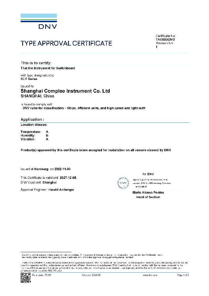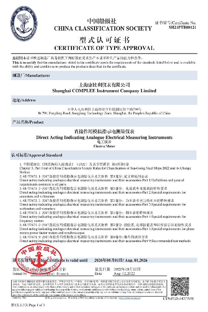 電流.電壓表TAE00002H2 DNV證書