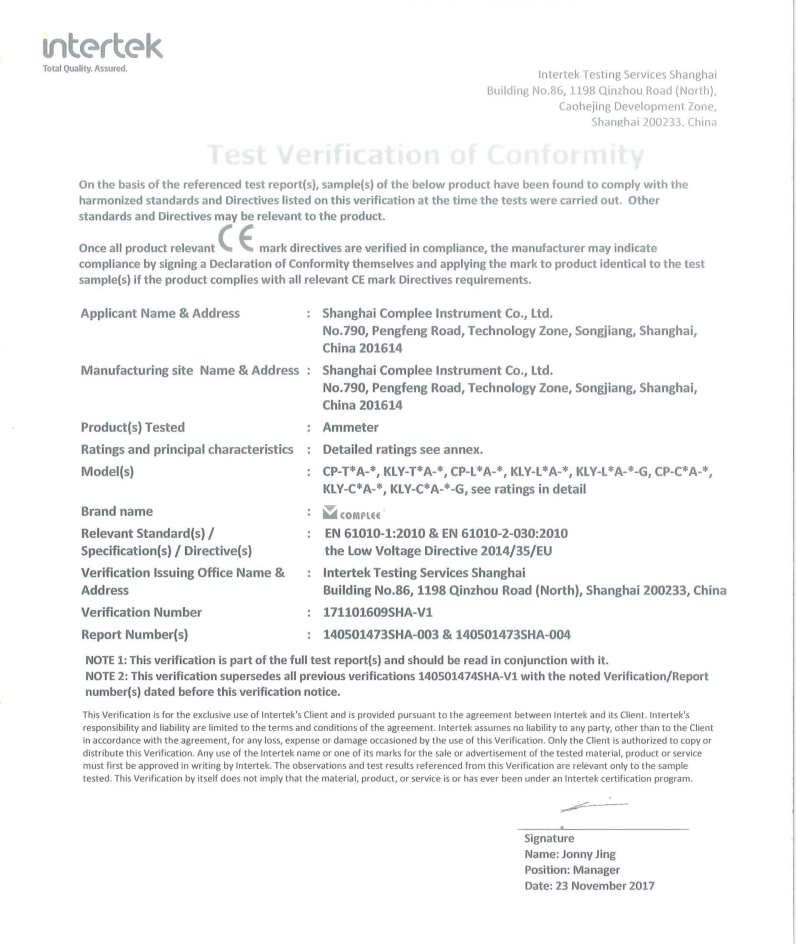 指針電流表-CE證書