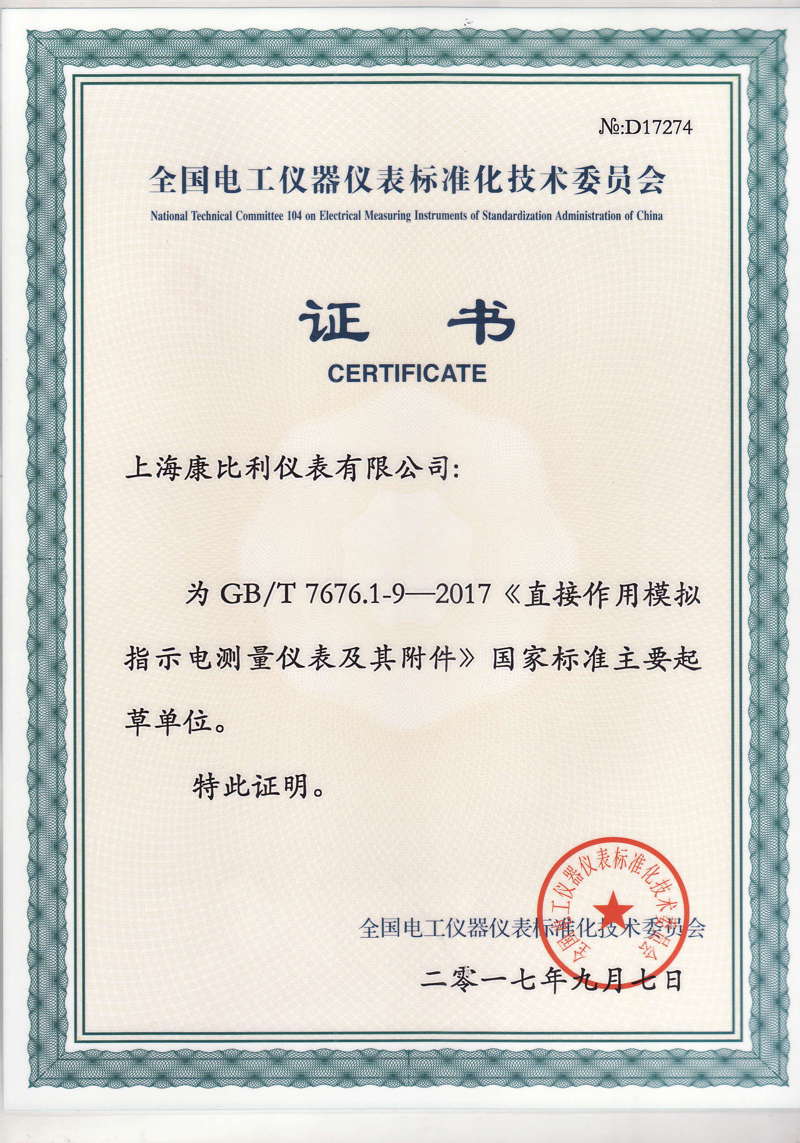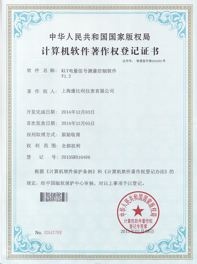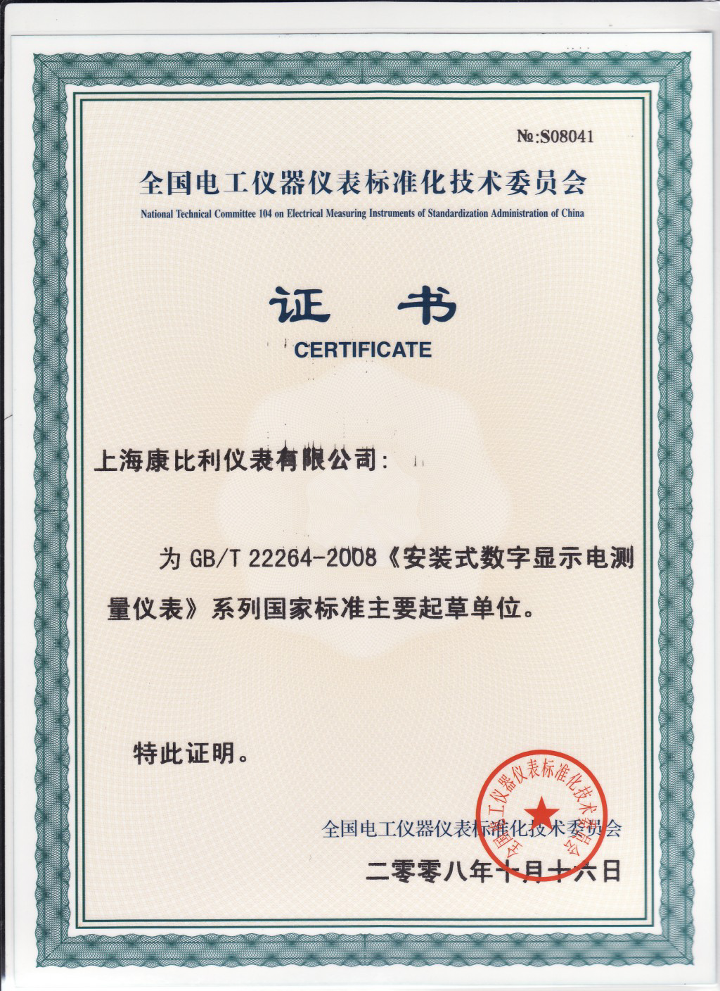 數字表國家標準參編證書