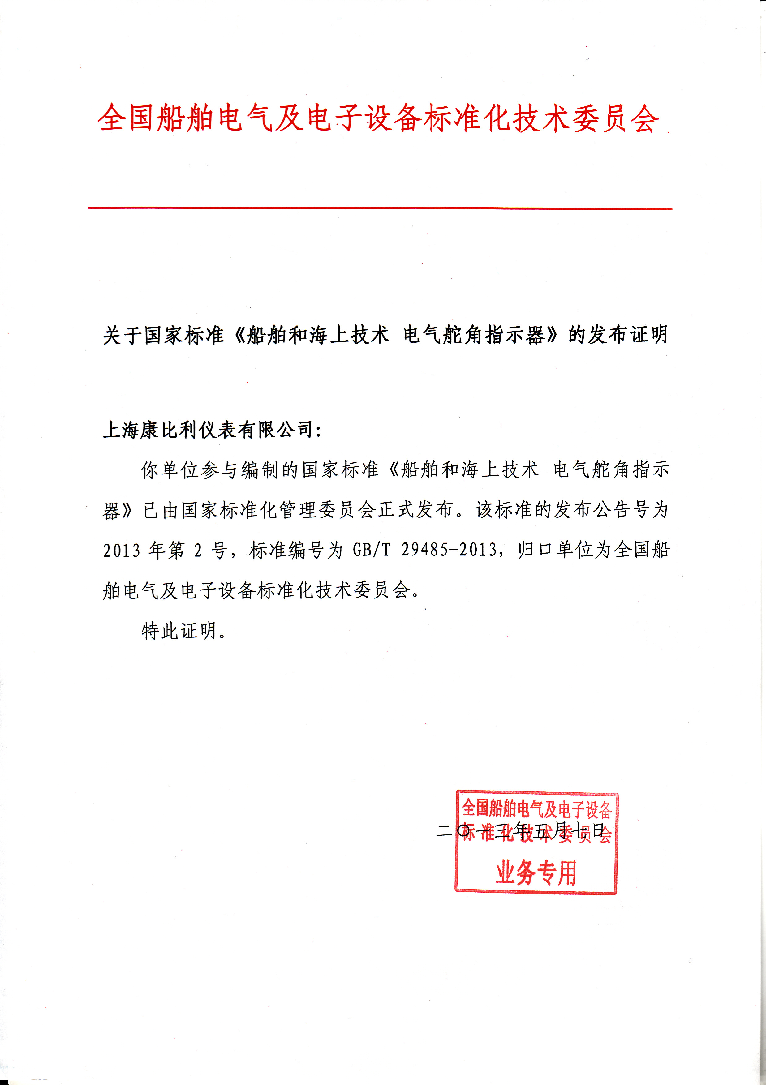 舵角標準發布證明